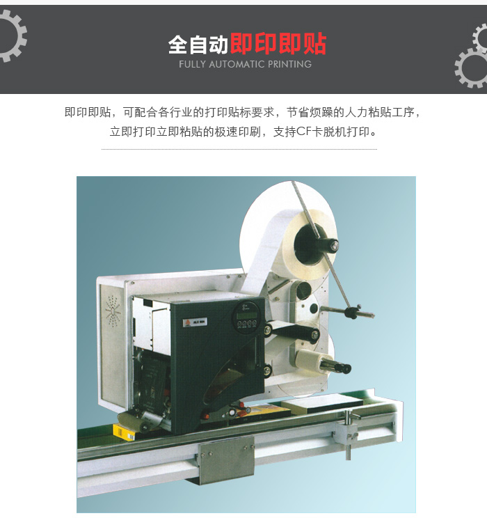 ALX 92x打印貼標(biāo)機(jī) 的1:1 即印即貼功能,讓標(biāo)簽可以同時(shí)進(jìn)行打印及貼標(biāo),直接貼于商品上無(wú)可比擬的打印速度!64-bit 處理器可極速下載資料,發(fā)揮其1:1 即印即貼功能運(yùn)作系統(tǒng)能同時(shí)處理多過(guò)一項(xiàng)指令,即使現(xiàn)在的打印工作還未完成,亦可同時(shí)準(zhǔn)備下一項(xiàng)打印工作ALX 92x 更換新的打印工作時(shí)無(wú)需停止現(xiàn)有的工作,其極速打印速度可達(dá)每秒400mm,而配合300dpi 高解像度印頭,即使打印細(xì)字體或圖像,效果同樣出色多個(gè)型號(hào)產(chǎn)品設(shè)定適用于不同作業(yè)系統(tǒng):除備有左、右手操作類型外,ALX 92x 打印貼標(biāo)機(jī)亦備有其他版本配合不同打印寬度:106mm, 127mm, 160mm可靠的工業(yè)用途設(shè)計(jì)ALX 92x 結(jié)構(gòu)穩(wěn)固,適合應(yīng)用于工業(yè)環(huán)境。